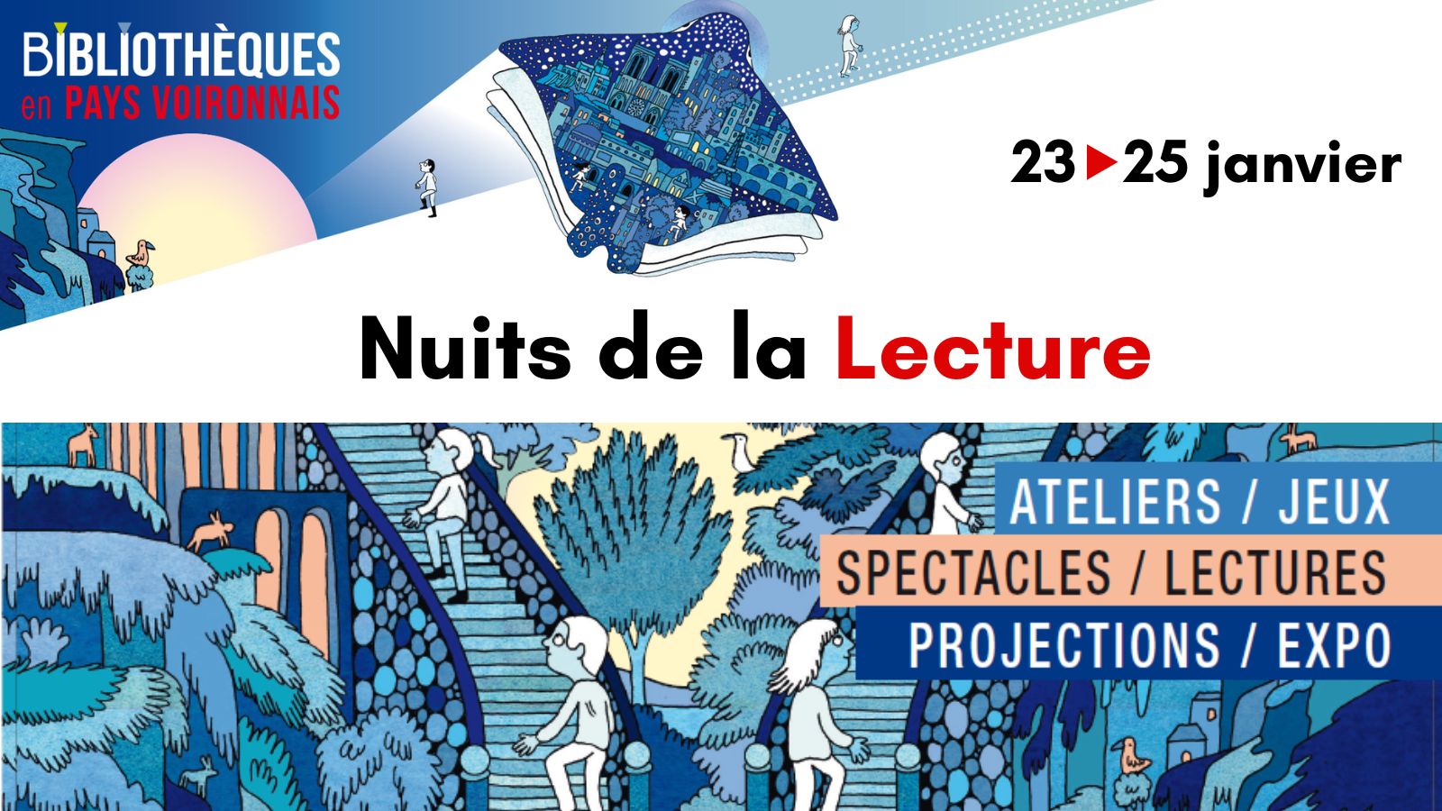 Préparez vous pour les Nuits de la lecture, qui se dérouleront du jeudi 23 au samedi 25 janvier 2025 dans le réseau des bibliothèques du Pays Voironnais !