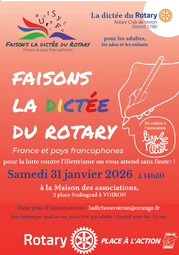 Le Rotary club de Voiron organise sa deuxième édition de "La Dictée" au profit de l'association "Lire pour lier", qui agit contre l'illettrisme.