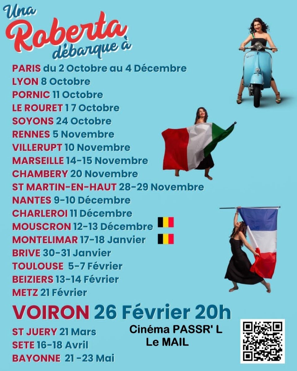 Roberta Cecchin, humoriste italienne, débarque à Voiron à l'occasion du Festival de cinéma italien. Elle nous offre un voyage interculturel entre la France qu'elle adore et son pays natal, l'Italie. Un spectacle comique en français avec un accent italien